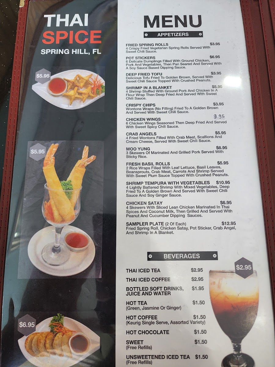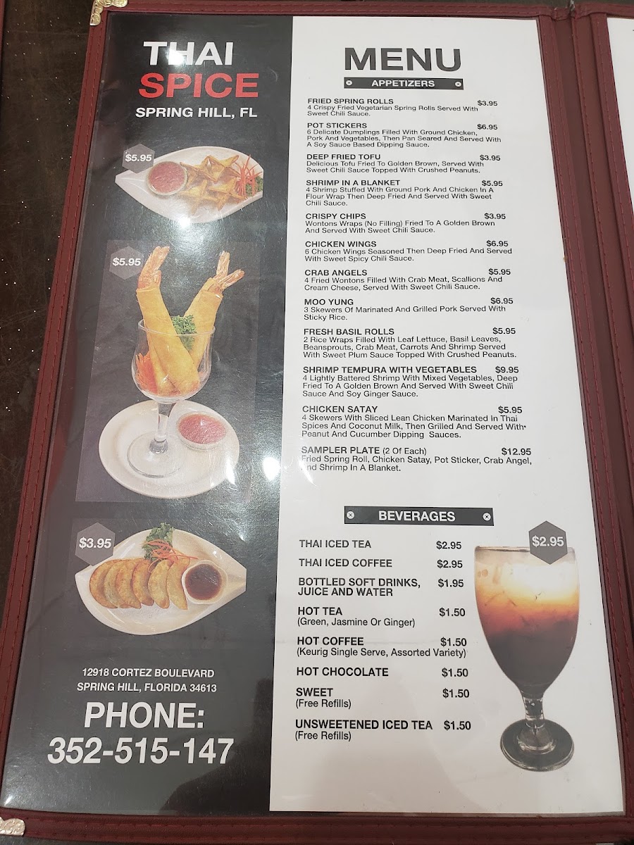 Welcome to Thai Spice, a gem nestled in Brooksville, Florida, where authentic Thai flavors come alive. Located at 12918 Cortez Blvd, this charming restaurant is renowned for its attentive service and cozy atmosphere, making each dining experience feel special.